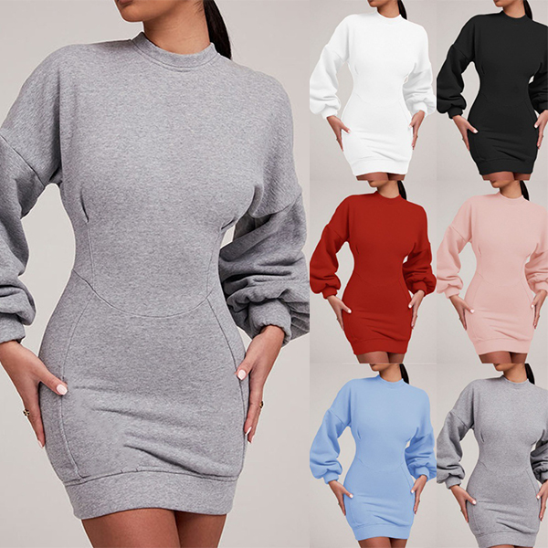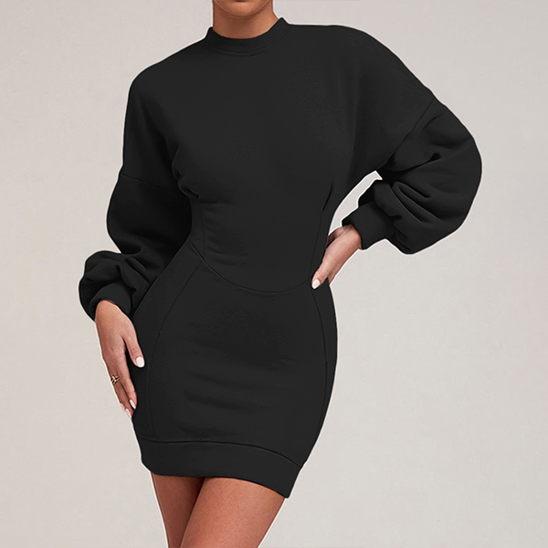 Fashion Crew Neck Long Sleeve Bodycon Sweatdress