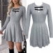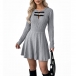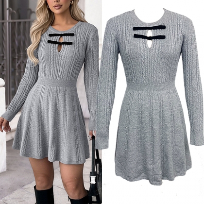 Fashion Crew Neck Long Sleeve Bow-knot Front Cutout Texture Mini Dress
