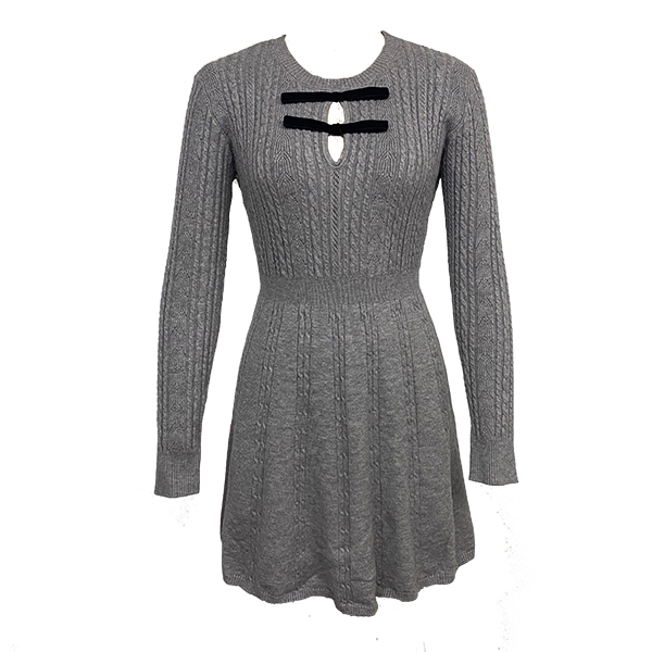 This charming dress features classic crew neck styling with feminine bow-knot detailing and striking front cutout design for contemporary playful sophistication. Pair with ankle boots and delicate accessories for contemporary feminine appeal.