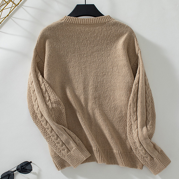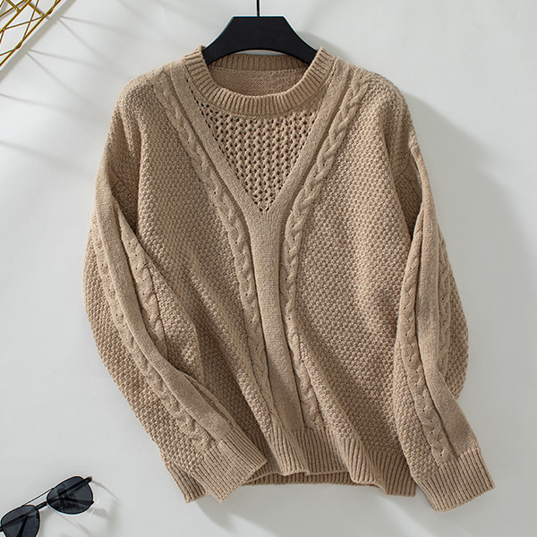 Fashion Crew Neck Long Sleeve Cable Pattern Sweater