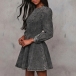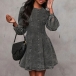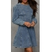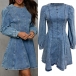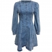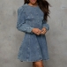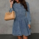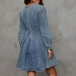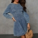 Fashion Crew Neck Long Sleeve Cinch Waist Old-washed Denim Mini Dress