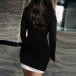 This is a chic and stylish dress that features a crew neckline, long sleeves, contrast color hemline, and bodycon silhouette for a modern and sophisticated look.