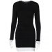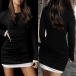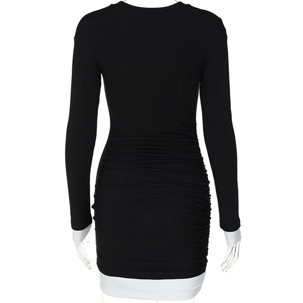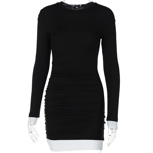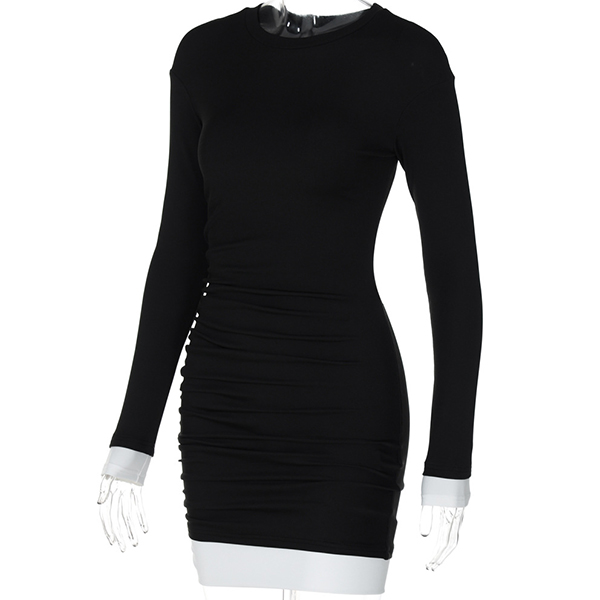 Fashion Crew Neck Long Sleeve Contrast Color Hemline Bodycon Dress
