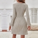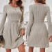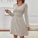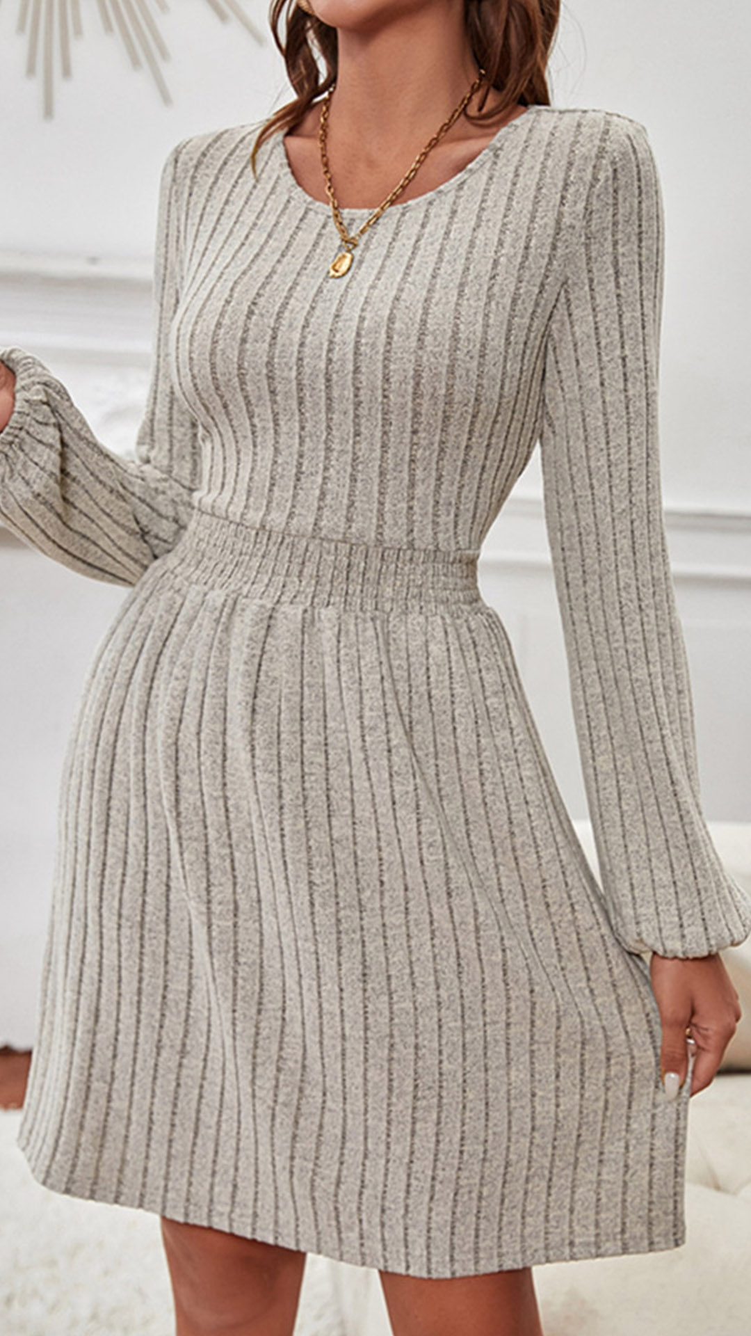 Fashion Crew Neck Long Sleeve Elastic Waist Mini Dress