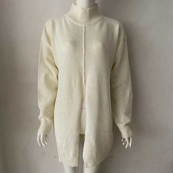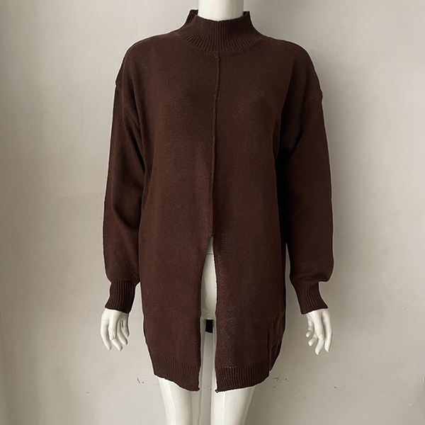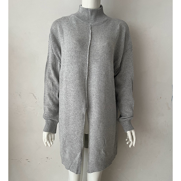 Fashion Crew Neck Long Sleeve Front Slit Sweater