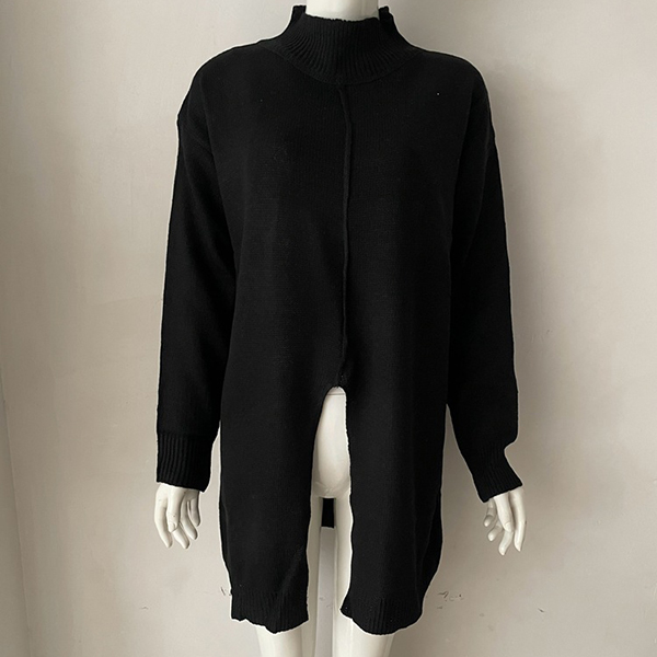 Elevate your casual style with this Sweater. This trendy piece features a classic crew neckline and long sleeves for a timeless look. The front slit detail adds a modern twist, creating an eye-catching silhouette that allows for ease of movement. Pair it with jeans or leggings for a comfortable yet stylish outfit that's perfect for any occasion!
