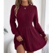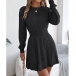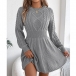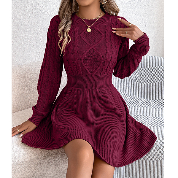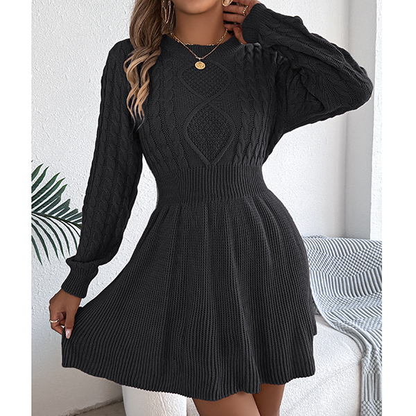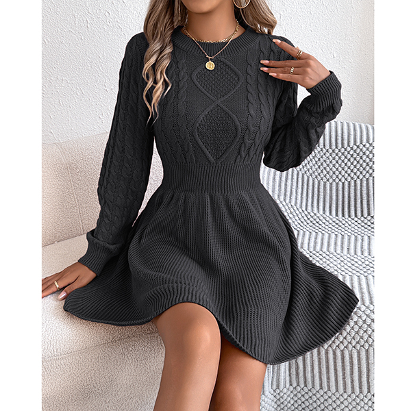 Fashion Crew Neck Long Sleeve High-rise Cable Knitted A-line Sweater Dress