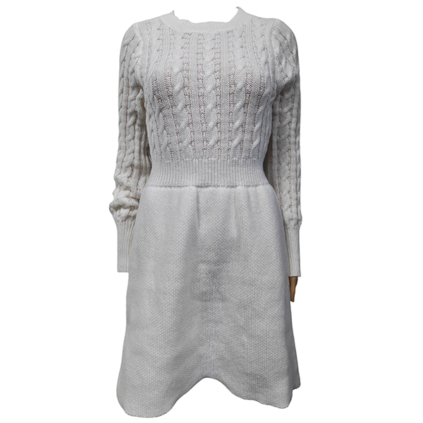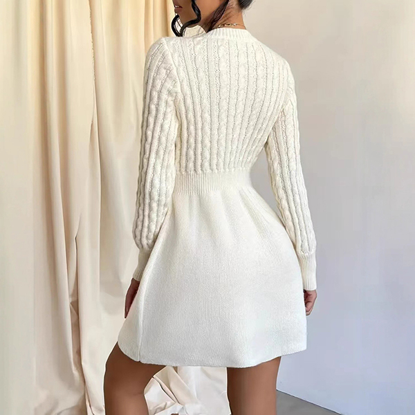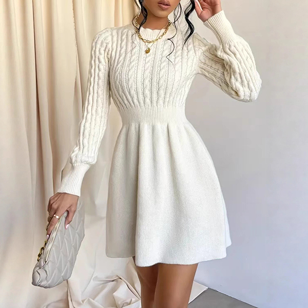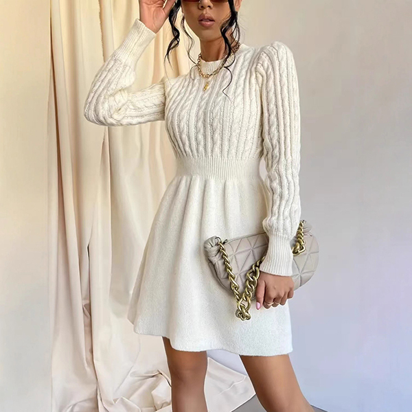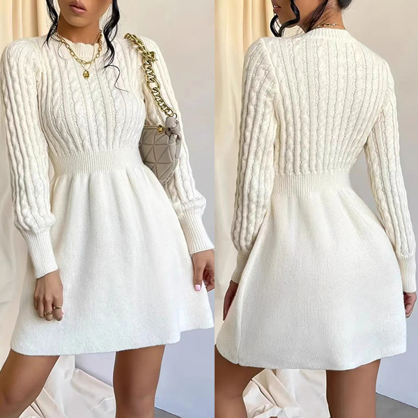 This elegant sweater dress features classic crew neck styling with sophisticated cable pattern knitting and flattering high-rise design for timeless cozy sophistication. Pair with knee-high boots and scarves for fashion look~