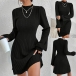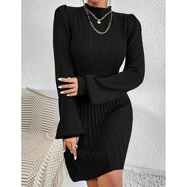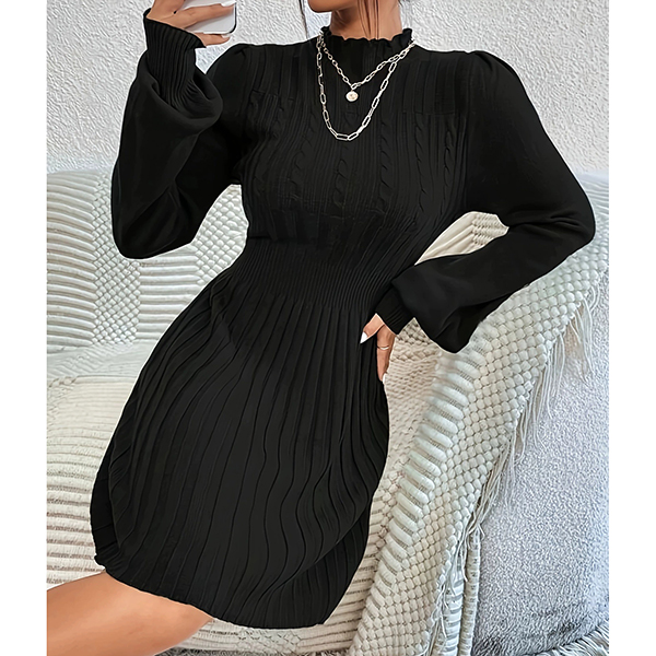 Fashion Crew Neck Long Sleeve High-rise Ribbed Dress