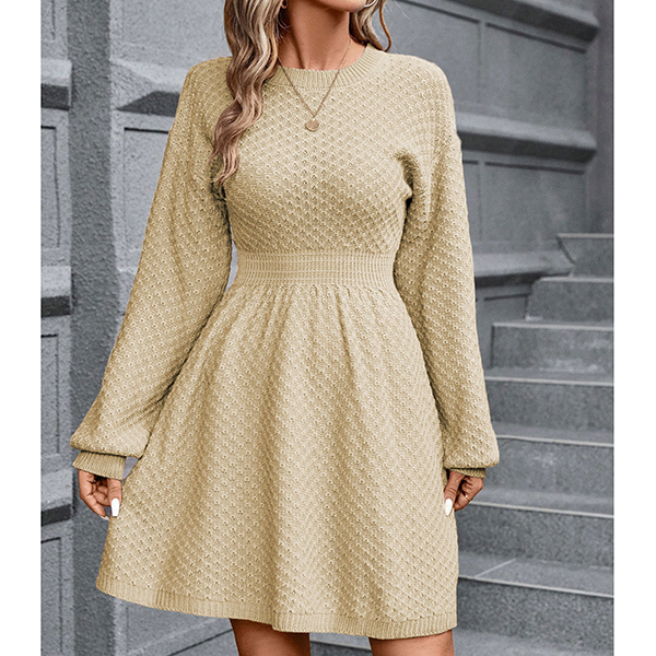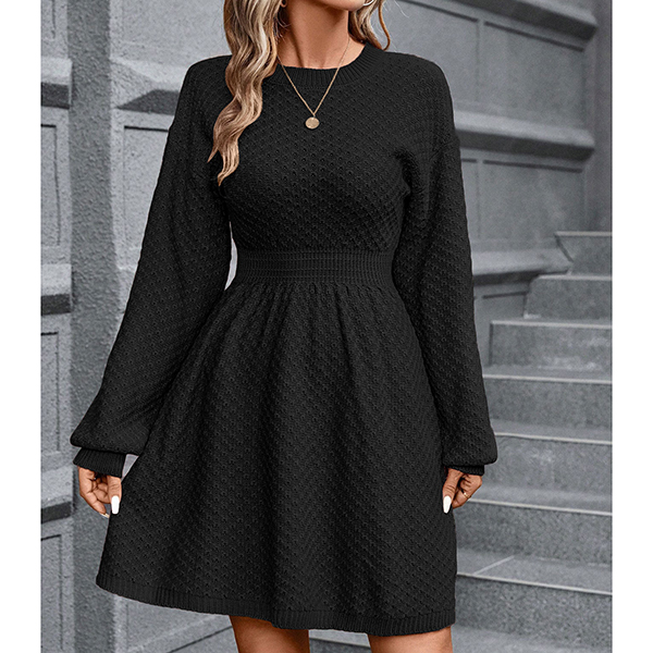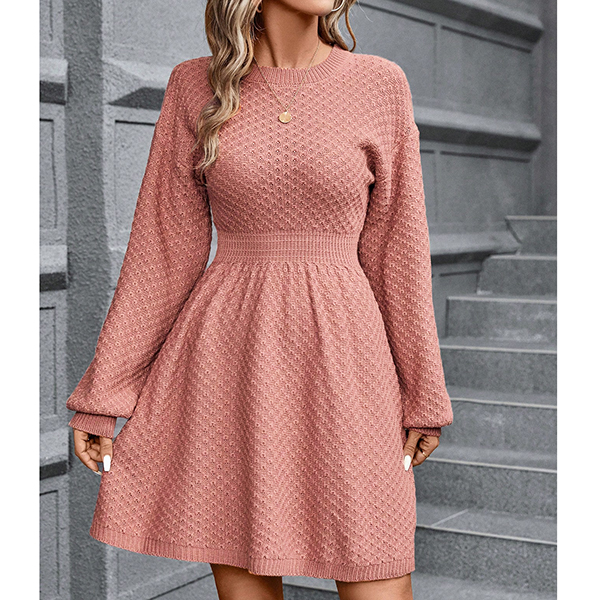 Fashion Crew Neck Long Sleeve High-rise Sweater Dress