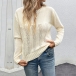 This knitted shirt features a crew neck, long sleeves, and a hollow-out knitted design, creating a stylish and trendy look. Pair it with high-waisted jeans or a skirt for a chic and casual look.