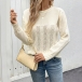 Fashion Crew Neck Long Sleeve Hollow Out Knitted Shirt