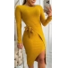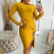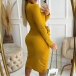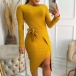 This yellow wrap dress features a crew neck, long sleeves, an irregular hemline, bodycon silhouette, and ribbed texture, creating a chic and stylish look. This wrap dress is perfect for creating a sophisticated and on-trend outfit. Pair it with boots and jacket for a more fashion look!