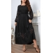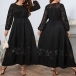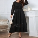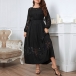 Fashion Crew Neck Long Sleeve Jacquard Lace Spliced Maxi Plus-size Dress
