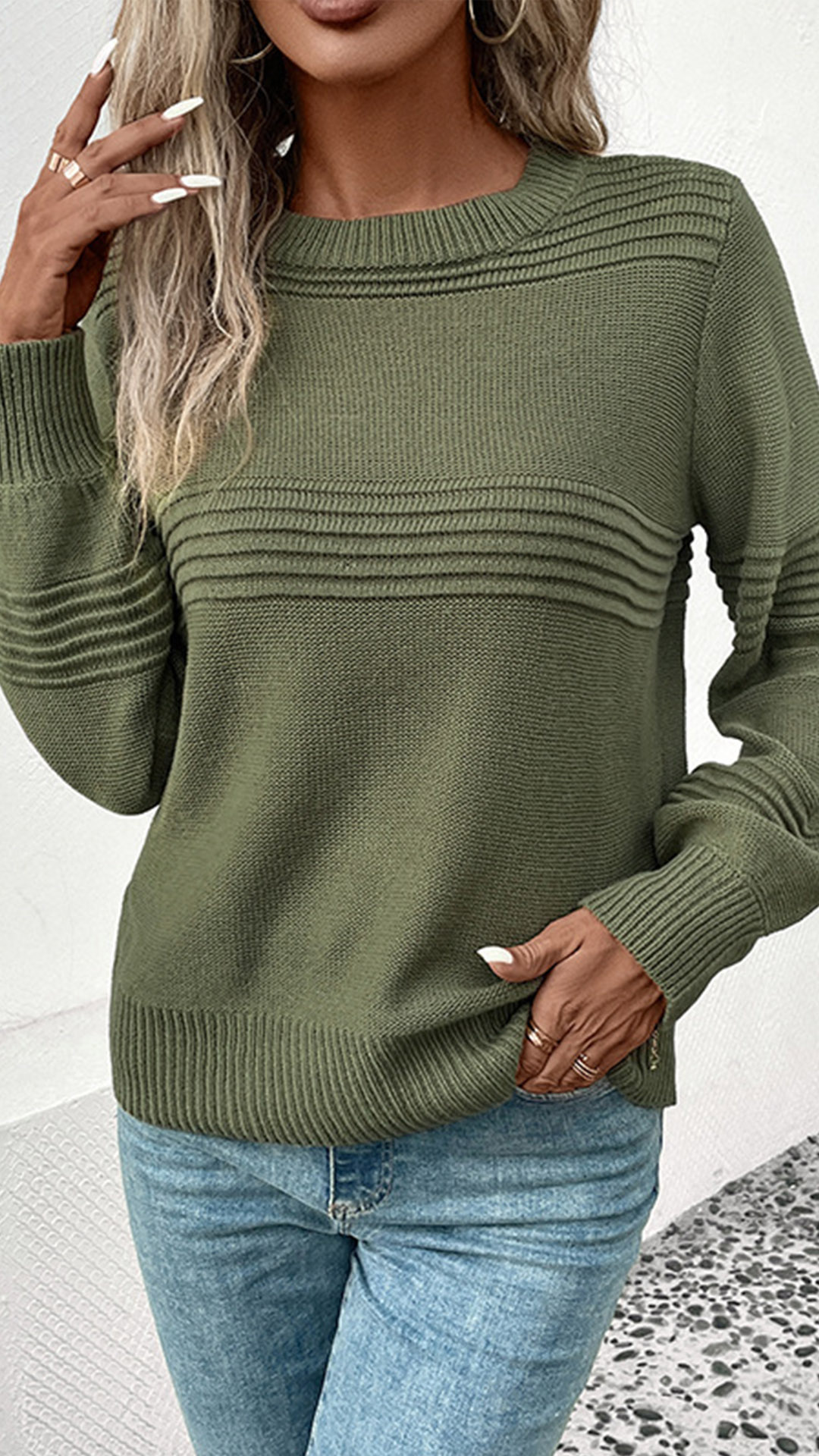 Fashion Crew Neck Long Sleeve Knitted Sweater