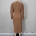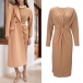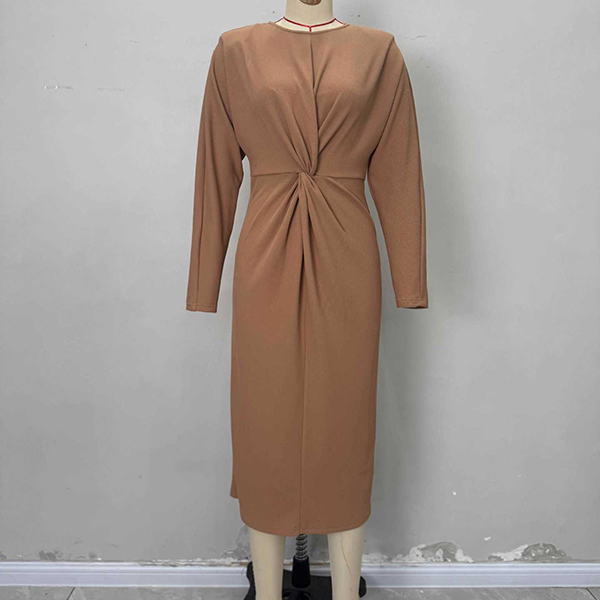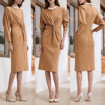 Fashion Crew Neck Long Sleeve Knotted Ruched Bodycon Dress