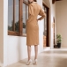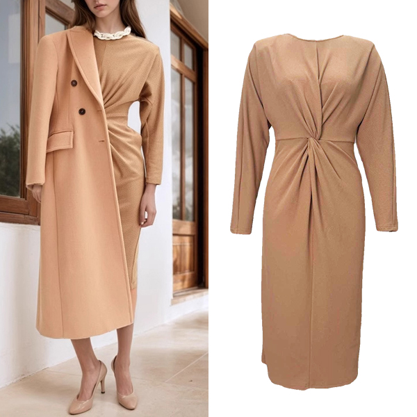 What sets this dress apart is the artful combination of knotted and ruched detailing that transforms the simple silhouette into a figure-flattering masterpiece. Style it with pointed-toe pumps and minimal jewelry for a sleek office look, or add statement accessories and heels for evening sophistication.