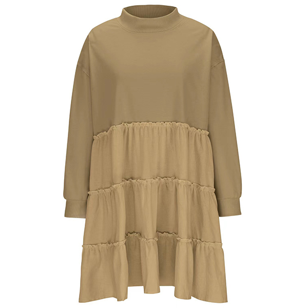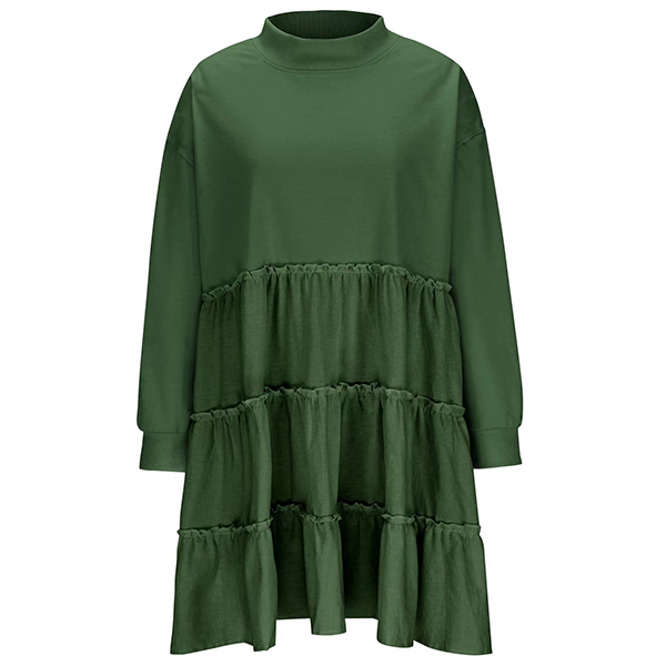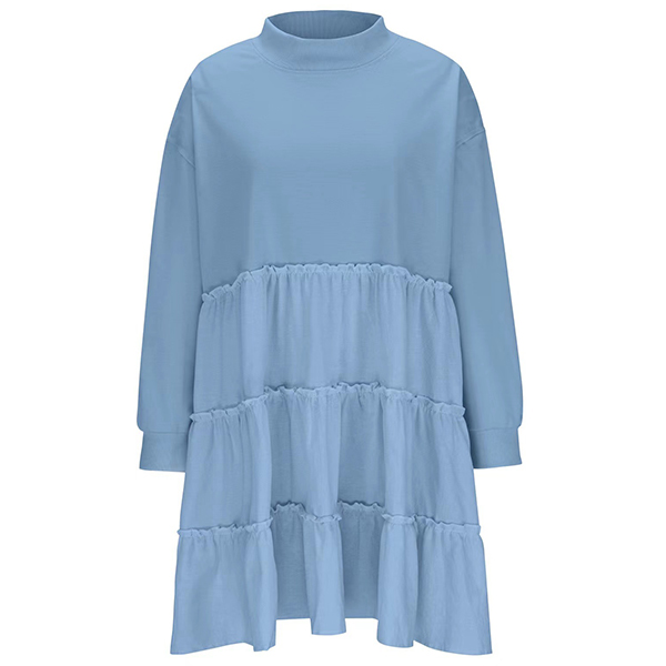 Fashion Crew Neck Long Sleeve Pleated Tiered Sweatshirt