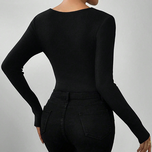 Master the art of streamlined styling with this essential ribbed bodysuit that forms the perfect foundation for countless outfits. The classic crew neckline offers timeless versatility, while long sleeves provide comfortable coverage ideal for layering or wearing solo. Wanna have a try?