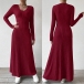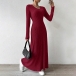 Fashion Crew Neck Long Sleeve Ribbed Maxi Dress