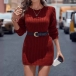 Fashion Crew Neck Long Sleeve Ribbed Sweater Dress