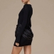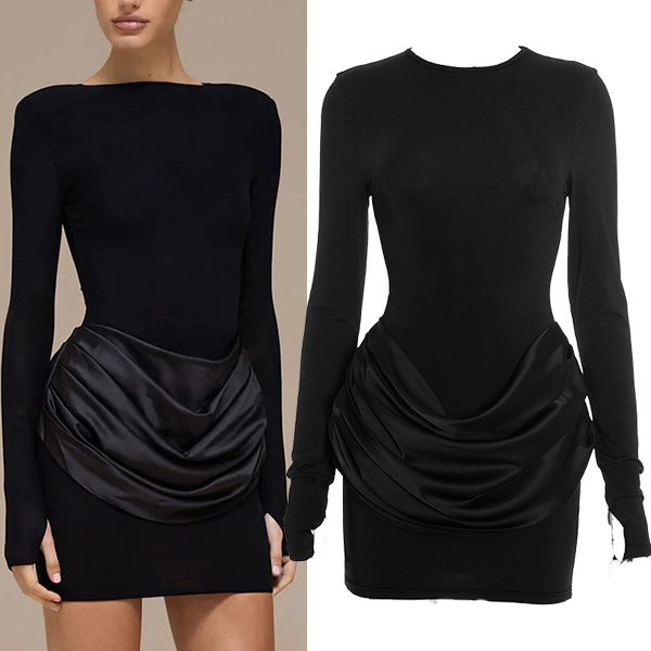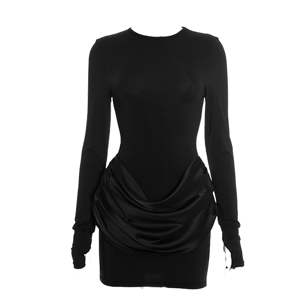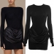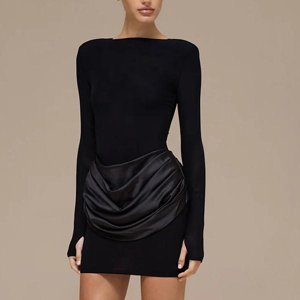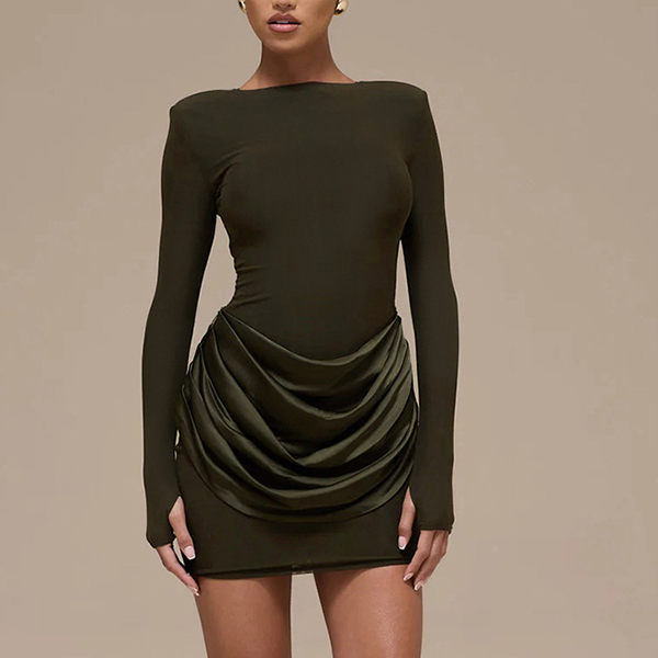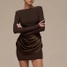 Fashion Crew Neck Long Sleeve Ruched Bodycon Dress