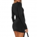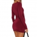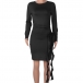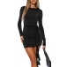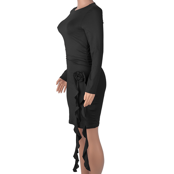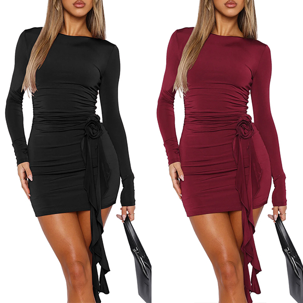 Fashion Crew Neck Long Sleeve Ruched Side Rose Tassel Bodycon Dress