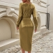 This bodycon dress features a crew neck, long sleeves, self-tie waist, and an irregular hemline, creating a chic and stylish look.