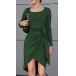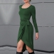 Fashion Crew Neck Long Sleeve Self-tie Irregular Hemline Bodycon Dress