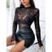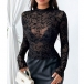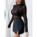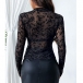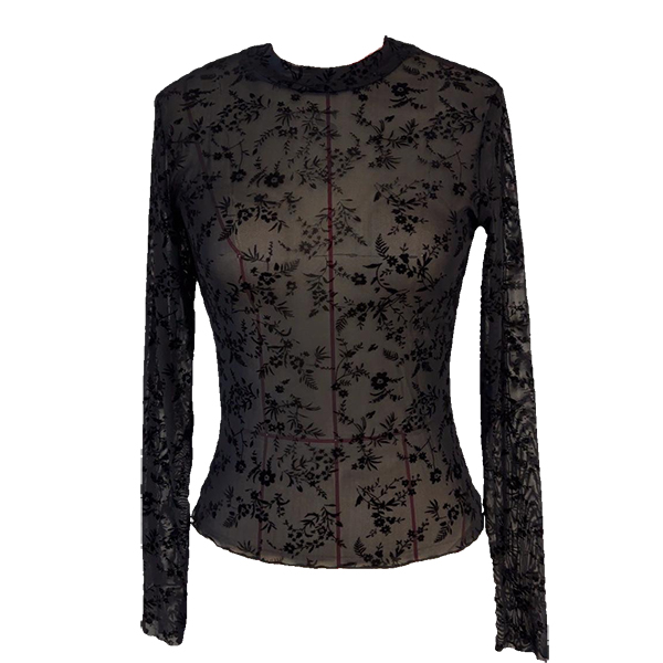 Fashion Crew Neck Long Sleeve Semi-through Jacquard Gauze Shirt