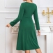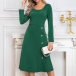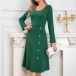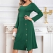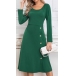 Fashion Crew Neck Long Sleeve Side Button Dress
