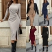 This solid color dress features textured ribbed fabric with sophisticated side knot along the waist detailing and ruched design for modern elegance. The side slit provides comfortable movement with alluring appeal whilst the ribbed texture ensures flattering fit with tactile luxury. Perfect for daily wear.