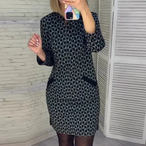 This mini dress features a crew neck, long sleeves, side pockets, a flattering silhouette, and a playful printed design that adds a pop of personality to your outfit. Wanna have a try?