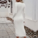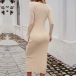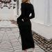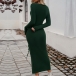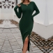 Fashion Crew Neck Long Sleeve Side Slit Drawstring Bodycon Dress