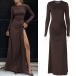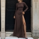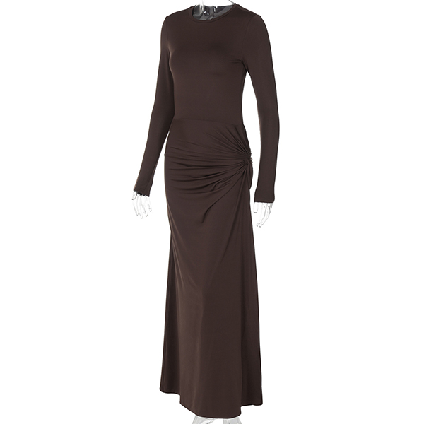 Fashion Crew Neck Long Sleeve Side Slit Maxi Dress