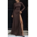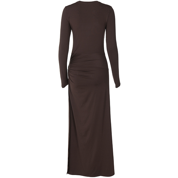 This elegant and versatile dress features a classic crew neckline and long sleeves for a chic and sophisticated look. The side slit adds a touch of allure and movement, making it perfect for a special occasion or a night out.