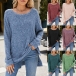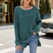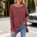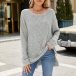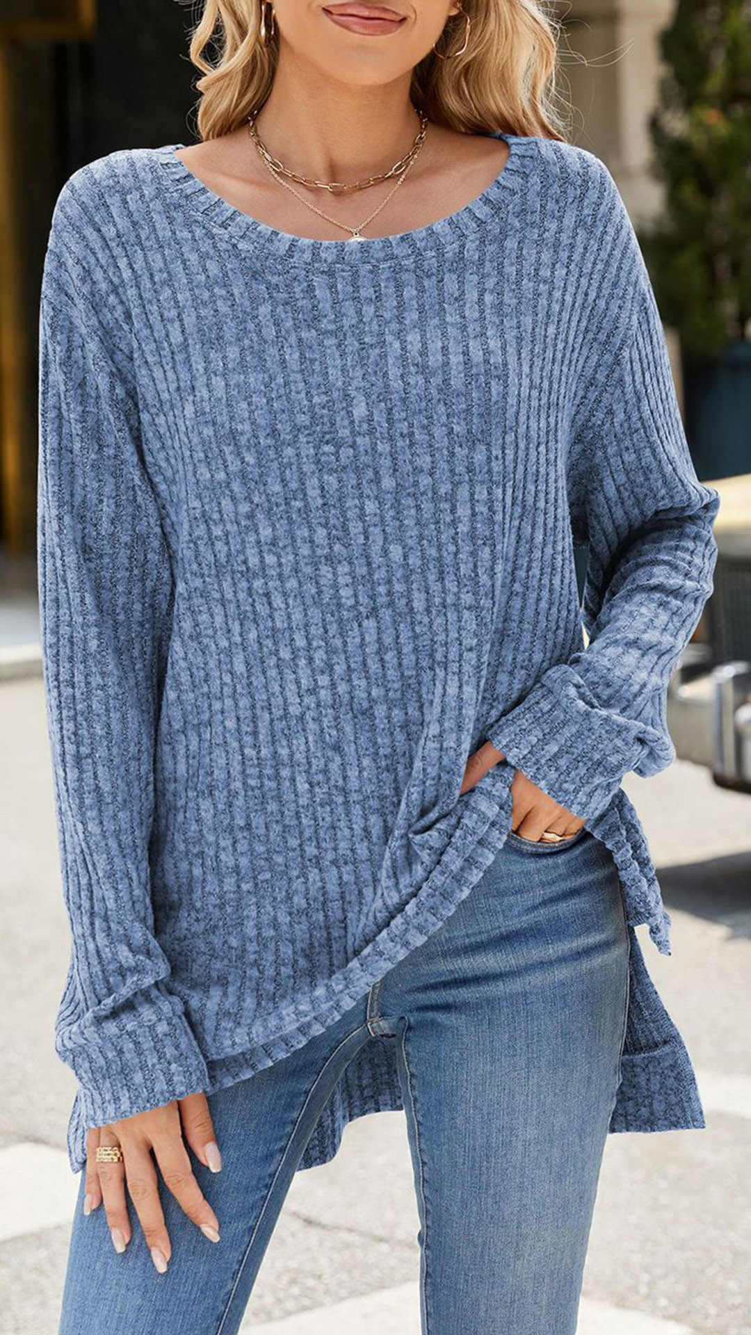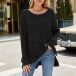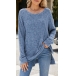Fashion Crew Neck Long Sleeve Side Slit Ribbed Shirt
