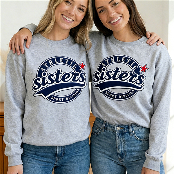 Fashion Crew Neck Long Sleeve Sisters-Letter Printed Sweatshirt for Best Friends