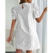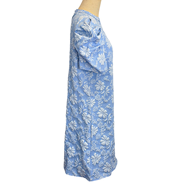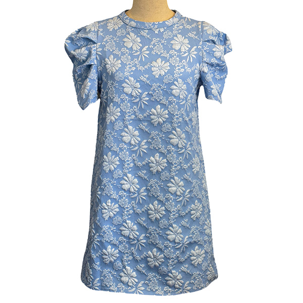 Featuring a charming floral jacquard pattern, this dress combines a classic crew neckline with trendy puff sleeves for a playful yet elegant look. The mini length adds a flirty touch, making it perfect for summer outings, brunches, or casual gatherings. Pair it with sandals or heels for an effortlessly chic ensemble.