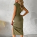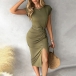Fashion Crew Neck Ruched Side Slit Bodycon Dress
