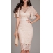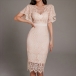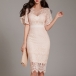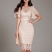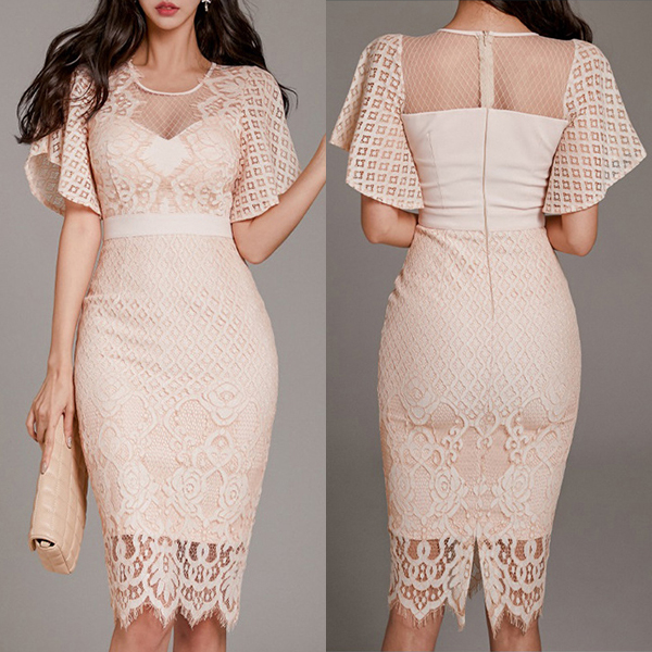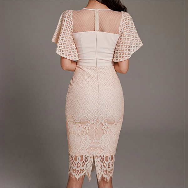 Fashion Crew Neck Ruffle Short Sleeve Bodycon Lace Dress
