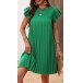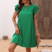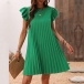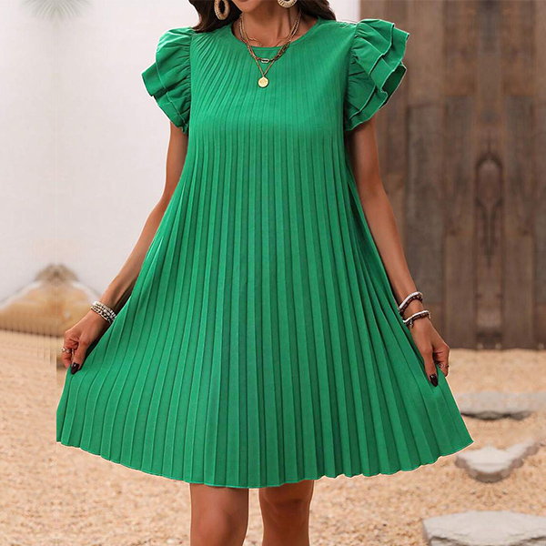 Fashion Crew Neck Ruffle Short Sleeve Pleated Dress