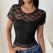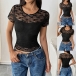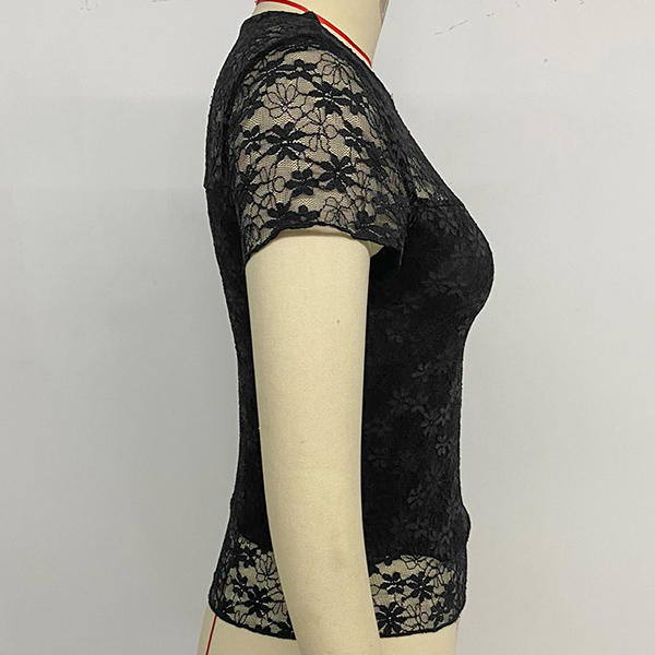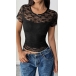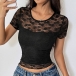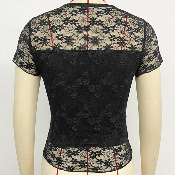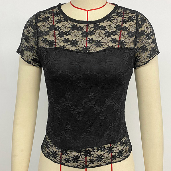 Fashion Crew Neck Short Sleeve Lace Shirt