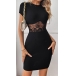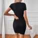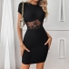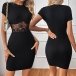 Fashion Crew Neck Short Sleeve Lace Spliced Bodycon Dress