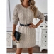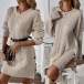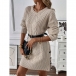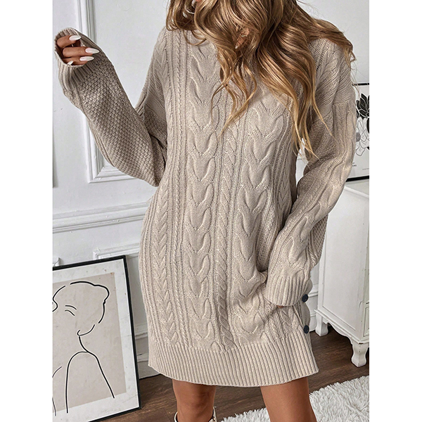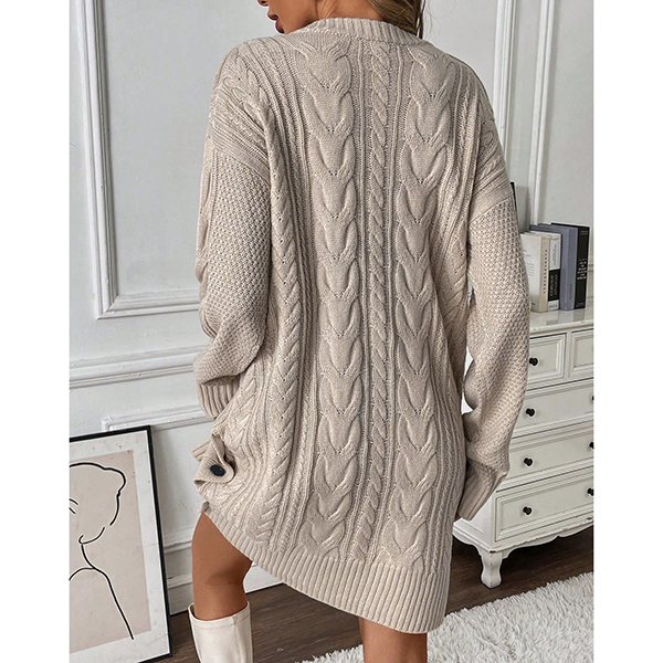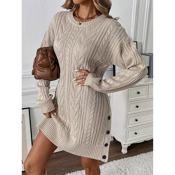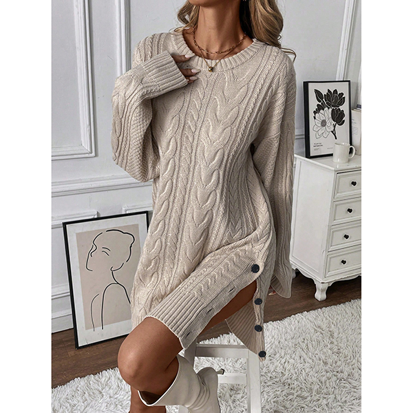 Fashion Crew Neck Side Button Slit Cable Pattern Knitted Sweater Dress