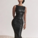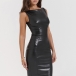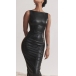 Fashion Crew Neck Sleeveless Back Slit Artificial Leather PU Bodycon Maxi Dress