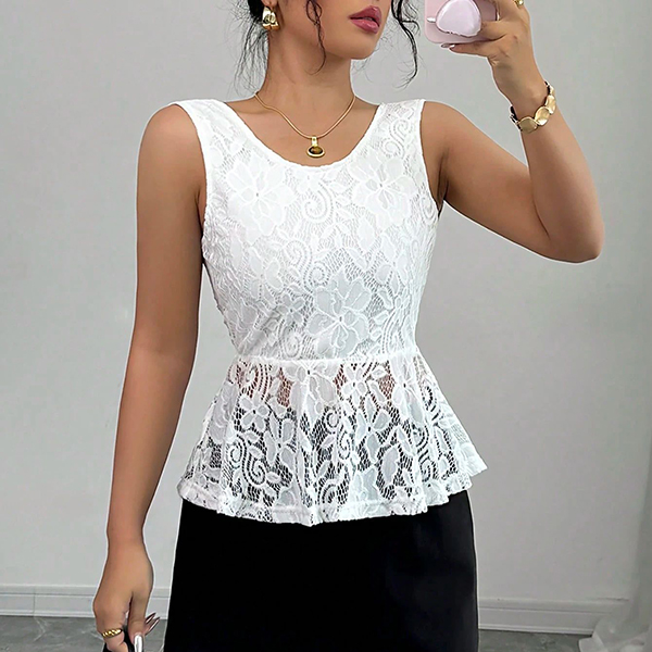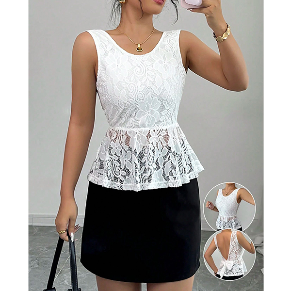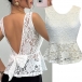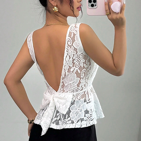 Fashion Crew Neck Sleeveless Backless Bowknot Lace Shirt