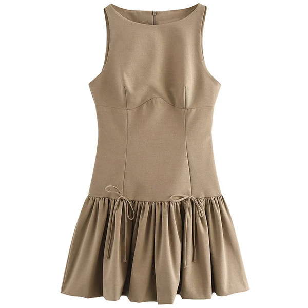 Fashion Crew Neck Sleeveless Bowknot Ruffle Hemline Mini Dress