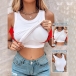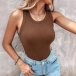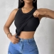 This tank top features a crew neck, sleeveless design, built-in bra, and ribbed texture, creating a chic and versatile look. The built-in bra offers support and comfort, eliminating the need for an additional undergarment. Pair it with high-waisted jeans or shorts for a laid-back look.