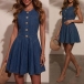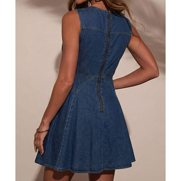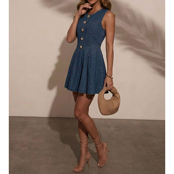 Fashion Crew Neck Sleeveless Front 3D Floral Button High-rise Denim Dress